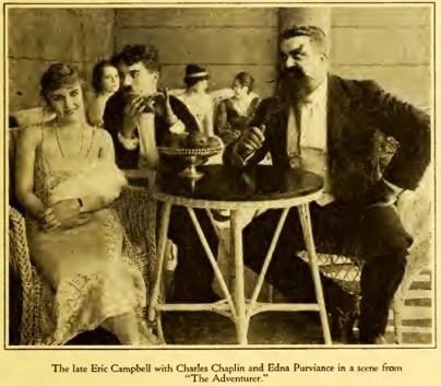 The late Eric Campbell with Charles Chaplin and Edna Purviance