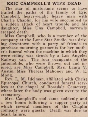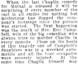 the company‘s footsteps since the picture was started. The first happening was the death of Mrs. Eric Campbell,