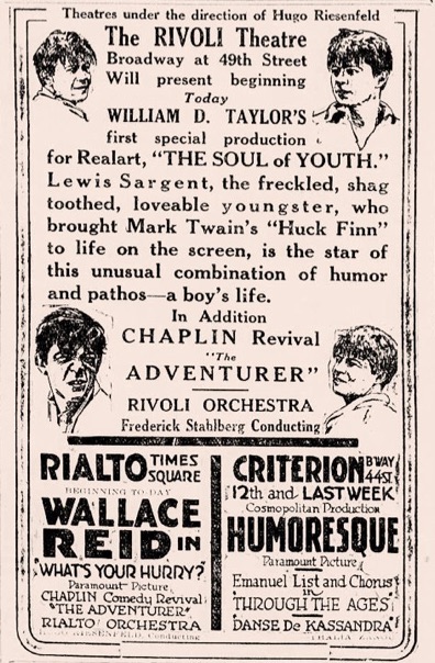 Advertisement. „Theatres under the direction of Hugo Riesenfeld