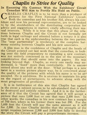 With this determination the First National Chaplin pictures should exceed in quality and in interest anything Chaplin has