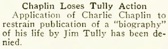 & CHAPLIN FILES SUIT TO HALT LIFE STORY