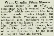 towards Charles Chaplin, the Miami Beach Woman‘s Club