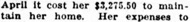 $100 for upkeep of her car; $27 for milk, $1,131,50 for servants,