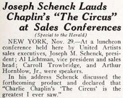 & Joseph Schenck Lauds Chaplin‘s „The Circus“