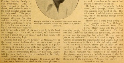 of assistant director to Chaplin is Harry Crocker. Harry,