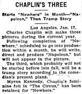 & Chaplin‘s Three. Starts „Nowhere“ in Month –