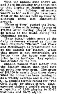 as funnier than Chaplin‘s Circus, had Clark and McCullough as presentation aid at the Capitol for $61,800. While that