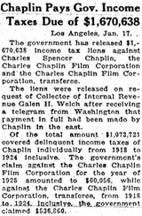 & Chaplin Pays Gov. Income Taxes Due of $1,670,638