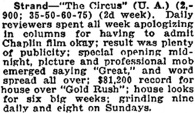 Chaplin‘s Circus, $81,200 at Strand, Claimed World‘s