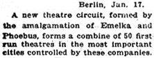 Berlin (By Cable) – The combination of Emelka and