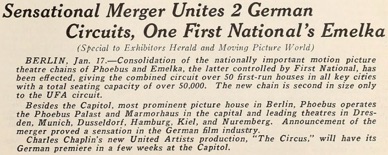 National‘s Emelka (...) Charles Chaplin‘s new United