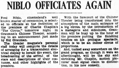 of Charlie Chaplin‘s „The Circus,“ tomorrow night in Grauman‘s