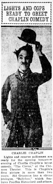 „The Circus,“ at the Chinese Theater. This is Chaplin‘s first