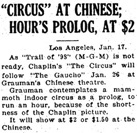 & „Circus“ At Chinese; Hour‘s Prolog. At $2