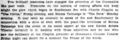 by Charlie Chaplin‘s latest picture, now playing at Grauman‘s