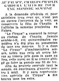 Le Cirque a consacré le retour au cinéma de Chaplin.