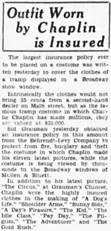 Editorial content. „Outfit Worn by Chaplin is Insured