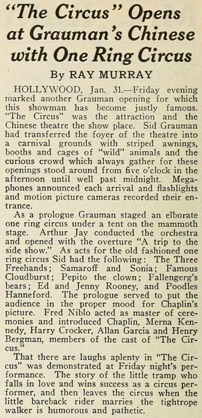 Chaplin at the mike, Chinese Theatre, „The Circus“ Premiere,