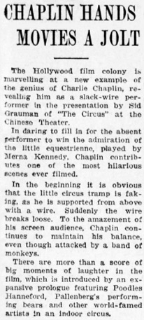 Advertisement. „CHAPLIN HANDS MOVIES A JOLT