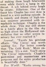 Chaplin´s The Circus concluded a four week´s run at Mark