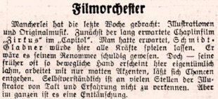 Mancherlei hat die letzte Woche gebracht: Illustrationen und Originalmusik. Zunächst der lang erwartete Chaplinfilm
