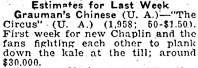 (1,998; 50–$1.50). First week for new Chaplin and the fans