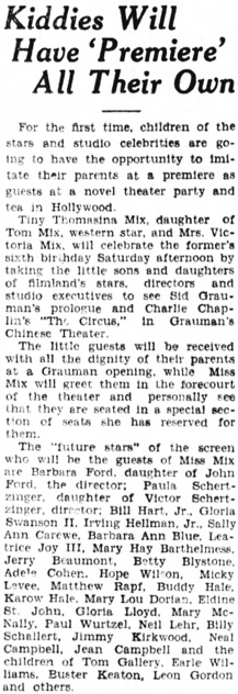 of their parents at a Grauman opening, while Miss