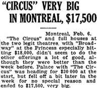 & „CIRCUS“ VERY BIG IN MONTREAL, $17,500