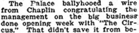 „The Palace ballyhooed a wire from Chaplin congratulating
