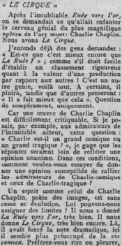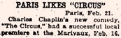 Paris, Feb. 21. Charles Chaplin‘s new comedy, The Circus, had