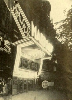 Marivaux, exterior by night, marquee unreadable, Paris