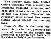 Chaplin‘s „Circus,“ besides giving the new United