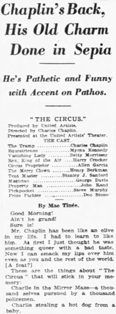 Mae Tinée, Chicago Tribune, Chicago, Ill., February 18, 1928.