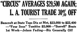 & „CIRCUS“ AVERAGES $29,500 AGAIN;