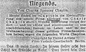Nirgends ist der Titel eines Films, den Chaplin Anfang 1928