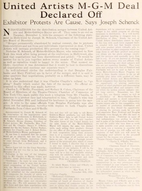 Editorial content. „United Artists M-G-M Deal Declared Off.