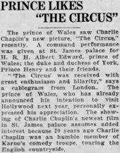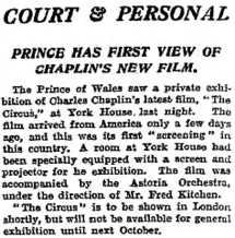 Chaplin‘s latest film, „The Circus,“ at York House last