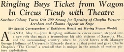 & Ringling Buys Ticket from Wagon In Circus Tieup with Theatre
