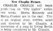 Charlie Chaplin will begin production on „City Lights“
