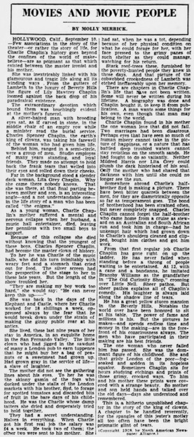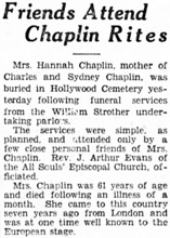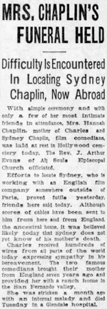 Editorial content. „MRS. Chaplin‘s FUNERAL HELD
