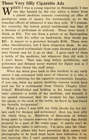 Editorial content. „Those Very Silly Cigarette Ads“ (...)