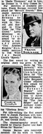 „To Charles Chaplin for writing, acting and producing The Circus“