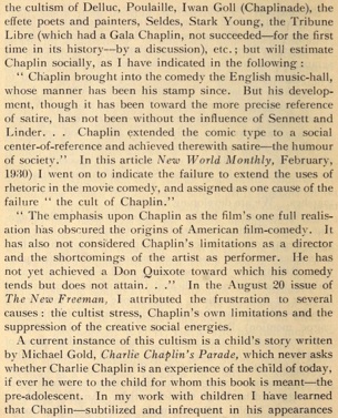 I began to prick the cult of Chaplin. I know that others have
