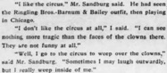 & „I like the circus,“ Mr. Sandburg said.