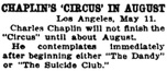& CHARLIE CHAPLIN SIGNS NEW LEAD FOR „CIRCUS“