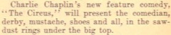 „Charlie Chaplin‘s new feature comedy, The Circus,