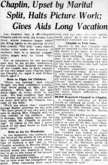 & Chaplin, Upset by Marital Split, Halts Picture Work;