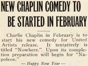 & NEW CHAPLIN COMEDY TO BE STARTED IN FEBRUARY