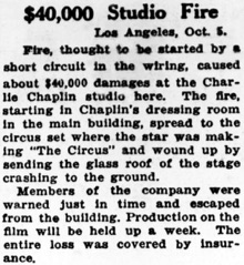 Studio here. The fire, starting in Chaplin‘s dressing room in the