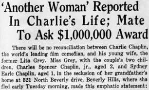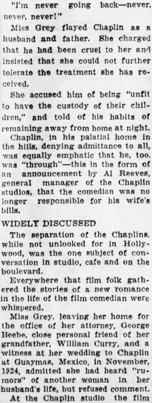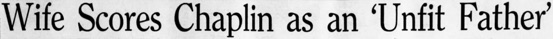 Editorial content. „Wife Scores Chaplin as an ,Unit Father‘